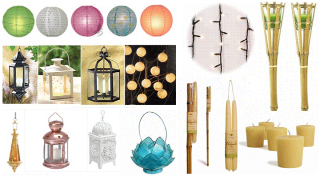 – Τα υφασμάτινα φανάρια ή τα φανάρια από ριζόχαρτο, είναι επίσης μια καλή λύση. Μπορείτε να τα κρεμάσετε από τη μαρκίζα που σκεπάζει τη βεράντα σας ή από κλαδιά δέντρων. Φυσικά όλα αυτά χρειάζονται εξαιρετικά μεγάλη προσοχή, ιδιαίτερα όταν έχει αέρα.