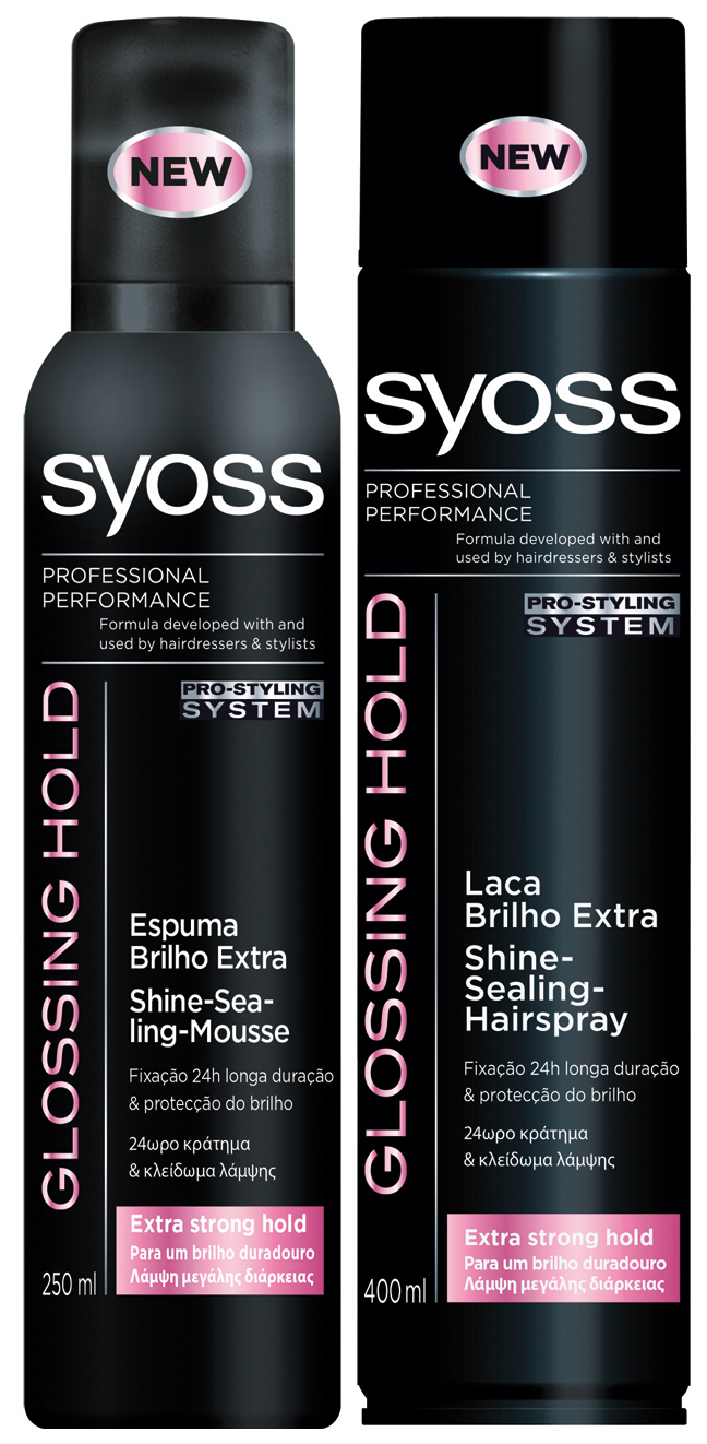 Από την άλλη, η σειρά styling Syoss Glossing Hold προσφέρει κράτημα και λάμψη για 24 ώρες. Η ισχυρή του φόρμουλα με το σύστημα Pro-Styling δίνει στο χτένισμα έξτρα δυνατό κράτημα για τέλειο έλεγχο, χωρίς να κολλάει και να αποδυναμώνει την τρίχα ενώ το gloss seal προσφέρει αστραφτερή λάμψη. Η σειρά περιλαμβάνει λακ και αφρό.