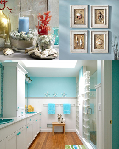 Η θαλασσινή διακόσμηση στο μπάνιο δεν είναι κάτι πρωτότυπο γι’ αυτό θα πρέπει να επιστρατεύσεις όλη σου τη δημιουργικότητα και την φαντασία. Κατ’ αρχήν ξέχνα τα έτοιμα κιτ «παραλιακής» διακόσμησης με κοχυλάκια και βότσαλα. Ο χώρος πρέπει να έχει την δική σου προσωπικότητα και να ευχαριστεί το δικό σου μάτι κι αυτό δεν γίνεται με ετοιματζίδικες προτάσεις. Ξέχνα λοιπόν όλα τα κλισέ, συμπεριλαμβανομένης και της κουρτίνας με τους φοίνικες.