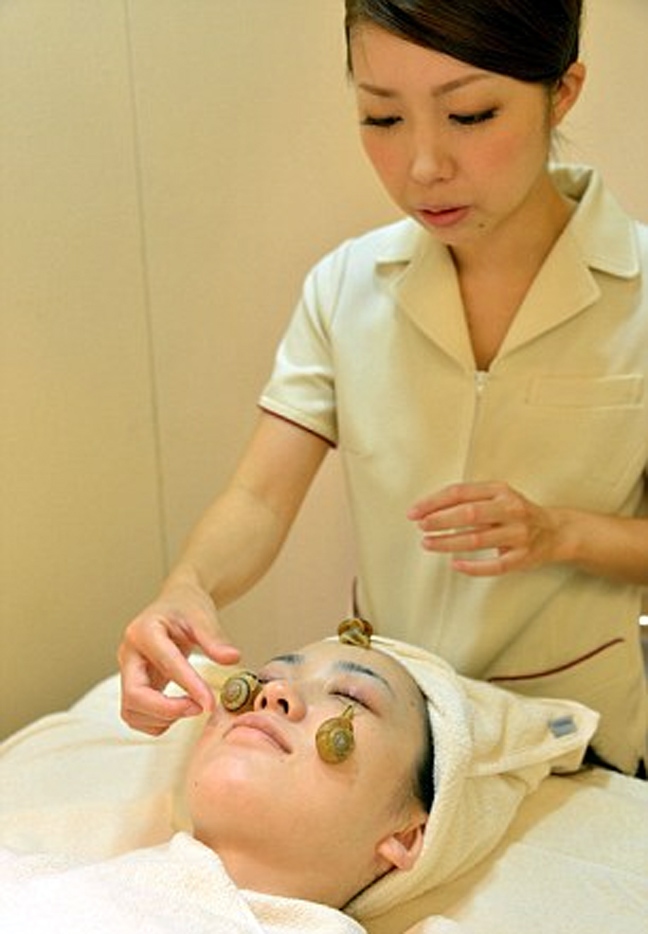 Κατά τη διάρκεια της ωριαίας θεραπείας, που εφαρμόζεται στο κέντρο Clinical Salon στο Τόκιο, το πρόσωπο καθαρίζεται και στη συνέχεια τοποθετούνται πάνω του σαλιγκάρια και αφήνονται να «βολτάρουν» στα μάγουλα και το μέτωπο.