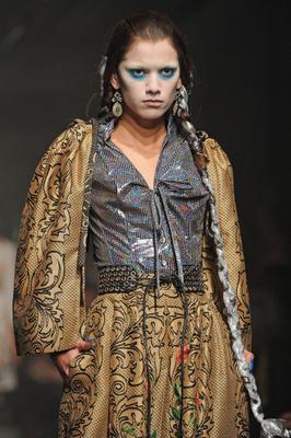 Η Vivienne Westwood έδωσε μια άλλη τροπή στο χτένισμα με κορδέλες να μπλέκονται ανάμεσα στις πλεξίδες και δημιουργούν ένα πιο «wild» αποτέλεσμα.