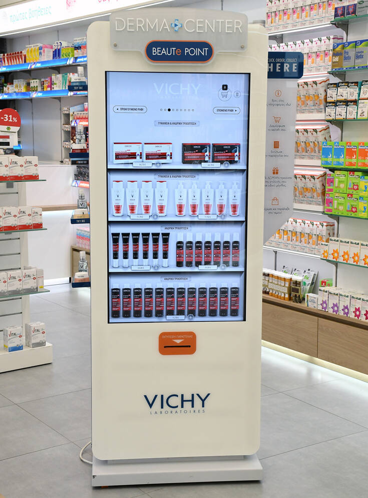 Στα BEAUT–e-POINT ο καταναλωτής, μπορεί να προηγηθεί στα δια δραστικά ψηφιακά ράφια. Έχει τη δυνατότητα να δει τις συνθέσεις των προϊόντων VICHY, να διαβάσει αναλυτικές πληροφορίες, να παρακολουθήσει video ή tutorial video των προϊόντων, καθώς και να λάβει προσωποποιημένες ρουτίνες ομορφιάς σύμφωνα με τις ανάγκες του. Έχοντας διαμορφώσει πλέον το καλάθι του μπορεί να λάβει δείγματα της επιλογής του, εξοικονομώντας χρόνο και αποφεύγοντας τις ουρές.