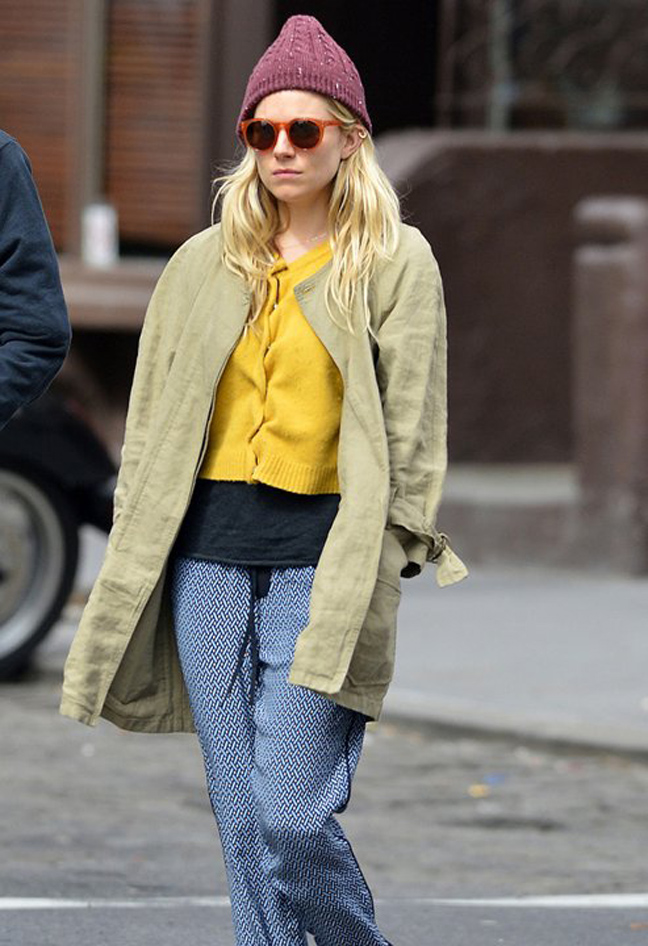 Sienna Miller: Υπάρχουν μέρες που κι εμείς βαριόμαστε, κι εμείς δεν έχουμε την καλύτερη των διαθέσεων αλλά όταν βγαίνουμε έξω ένα ρουχάλακι της προκοπής το φοράμε. Όχι ό,τι βρούμε μπροστά μας, που μπορεί να μην είναι και δικό μας…