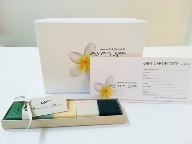 Για τους πιο αγαπημένους, συνδυάστε ένα Branche D’ Olive προϊόν μαζί με ένα Asian Spa Gift Certificate κάνοντάς τους ένα δώρο που θα απολαύσουν περισσότερο από κάθε άλλο – μια χαλαρωτική, αναζωογονητική θεραπεία στα Asian Spa που συνεπαίρνει τις αισθήσεις και προσδίδει μια ενέργεια μοναδική!