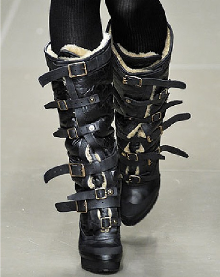 Και μάλιστα όχι μία –έστω εντυπωσιακή- αγκράφα. Η τάση για το Φθινόπωρο-Χειμώνα 2010-11 είναι “όσο περισσότερες, τόσο καλύτερα”. Μπότες με ατελείωτα μέτρα λουριών και με αμέτρητες αγκράφες επιθυμούν διακαώς να αγκαλιάσουν τα πόδια μας. Και πώς να τους αρνηθούμε, αφού τα λουριά μας αφήνουν το περιθώριο να αυξομειώνουμε το μέγεθός τους ανακαλύπτοντας εκείνη την μικρή αόρατη τρυπούλα σε καθένα τους που θα μας δώσει την άνεση που χρειαζόμαστε για τις πολλές ώρες στο γραφείο, ή την ατελείωτη ορθοστασία στην βραδυνή μας έξοδο.