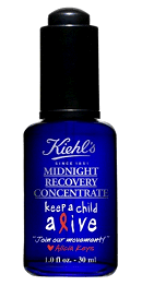 Ξεκινώντας από το μήνα αυτό, η Kiehl’s θα διαθέσει στην αγορά μια ειδική έκδοση του Midnight Recovery Concentrate με το 100% των εσόδων από τις πωλήσεις, ποσό που αναμένεται να φτάσει τα 200.000 δολάρια, να διατίθεται στο ΜΚΟ «Keep a Child Alive». Η ειδική έκδοση της συσκευασίας περιλαμβάνει και ένα σημαντικό μήνυμα από την Alicia Keys που μας καλεί να «λάβουμε μέρος σε αυτή την πρωτοβουλία», μήνυμα που αντανακλά τη συνεχή προσπάθειά της να εμψυχώσει το κοινό ώστε η φωνή της αλλαγής να κάνει την διαφορά στον αγώνα ενάντια στο AIDS.