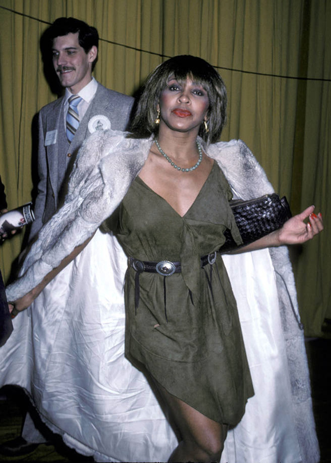 4. Tina Turner: ήταν η εποχή της εσωτερικής της αναζήτησης. Φόρεμα δερμάτινο, ζώνη western, γούνα βιζόν, σκουλαρίκια Cartier. Όλα ασύνδετα μεταξύ τους. Η Tina σε κάποια φάση το κατάλαβε και είπε να ποζάρει με σκέρτσο στον φωτογράφο. Αποτυχημένη κίνηση.