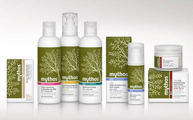 Πρόκειται για τα καλλυντικά «Mythos» με βάση την αγνότητα της ελιάς, καθώς και τις εξαιρετικές πρώτες ύλες της Μεσογείου, όπως είναι τα βότανα και οι καρποί (μέλι, σόγια, φασκόμηλο, λιναρόσπορος, αμυγδαλέλαιο).