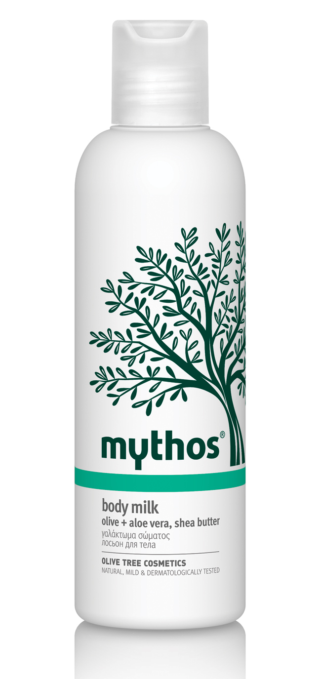 Το Body Milk Mythos (γαλάκτωμα σώματος) με ελιά, αλόη, βούτυρο καριτέ, φύκια και αμυγδαλέλαιο, λεκιθίνη και βιταμίνη Ε είναι η ολοκληρωμένη λύση για καθημερινή φυσική ενυδάτωση και φροντίδα της επιδερμίδας μας.