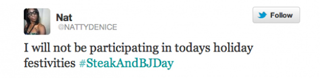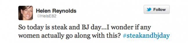 Και από τα σχόλια των αντρών όμως αποκαλύπτεται το σκληρό και ανάλγητο πρόσωπο του φεμινισμού: «Είπα στη γυναίκα μου για τη μέρα μπριζόλας και πεολειχίας πριν από κάνα-δυο χρόνια. Ακόμα αρνείται να γιορτάσει».