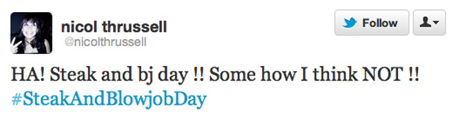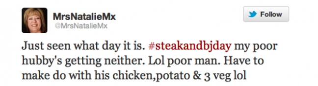 Και η χιουμοριστική εκδοχή του: «Μέρα μπριζόλα και πεολειχίας. Χαχα, το αγόρι μου μπορεί να φάει την μπριζόλα του, μέχρι εκεί όμως»…
