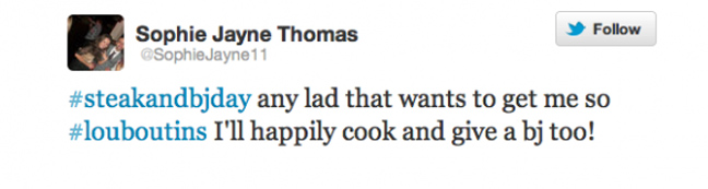 Από την άλλη, το γυναικείο χιούμορ δεν λείπει: «Όποιο αγόρι θέλει να μου πάρει Louboutin, θα του μαγειρέψω και θα το ικανοποιήσω ευχαρίστως».