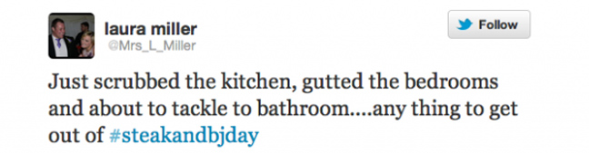 Όσο για τις πιο σκληροπυρηνικές, που έχουν κηρύξει τον ανένδοτο στη γιορτή, εδώ είμαστε: «Οπότε σήμερα είναι μέρα μπριζόλας και πεολειχίας. Αναρωτιέμαι αν υπάρχει γυναίκα που το ανέχεται αυτό;»…