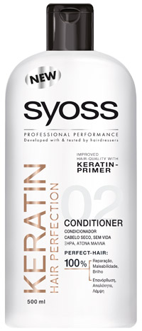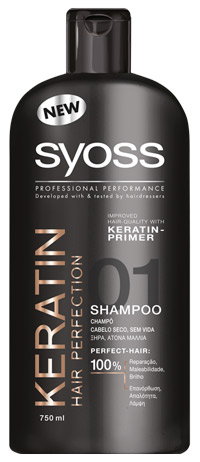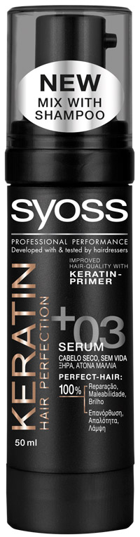 Το κλειδί για την απόλυτη εμπειρία περιποίησης βρίσκεται στη καινοτομική σύνθεση της σειράς Syoss KERATIN Hair Perfection, με 80% περισσότερη κερατίνη – πανομοιότυπη με αυτή των μαλλιών – η οποία αναπλάθει τα κατεστραμμένα μαλλιά, εισχωρώντας εις βάθος στη δομή της τρίχας και αναπληρώνοντας τα επίπεδα κερατίνης της. Το αποτέλεσμα είναι, μαλλιά πλήρως αναδομημένα, 100% πιο δυνατά, με 100% περισσότερη ελαστικότητα και λάμψη. Μεταμορφώστε τα ταλαιπωρημένα, θαμπά και άτονα μαλλιά που έχουν υποστεί τεχνικές εργασίες, σε δυνατά, υγιή και λαμπερά μαλλιά με ασύγκριτη, φυσική ελαστικότητα, με τη βοήθεια της νέας σειράς Syoss KERATIN HAIR PERFECTION!
