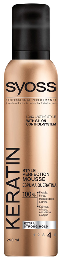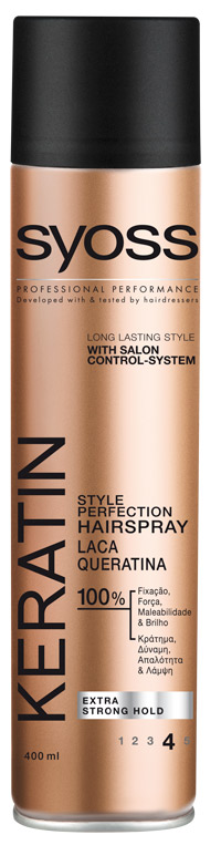 Η σειρά styling Syoss KERATIN Style Perfection, με κερατίνη πανομοιότυπη της τρίχας, ενδυναμώνει τα μαλλιά και προσφέρει δυνατό κράτημα μεγάλης διάρκειας για εντυπωσιακό styling. Αν αναζητάτε extra δυνατό κράτημα, λάμψη, τέλειο έλεγχο και αποτέλεσμα χωρίς υπολείμματα, η νέα σειρά styling Syoss KERATIN Style Perfection θα γίνει ο καλύτερός σας φίλος!