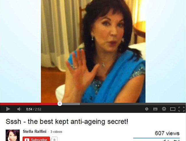 Η 67χρονη Στέλλα Ραλφίνι που ζει στο Λονδίνο, σύμφωνα με την Daily Mail, δηλώνει ότι έχει βρει το μυστικό της αντιγήρανσης και το αποκαλύπτει σε ένα tutorial βίντεο στα ελληνικά! Η Ραλφίνι, η οποία δηλώνει στην ιστοσελίδα της ότι ο πατέρας της είναι Ελληνοκύπριος, προτείνει και σε άλλες γυναίκες να χρησιμοποιήσουν μια μάσκα προσώπου από σπέρμα, απλώνοντάς το στο πρόσωπο.