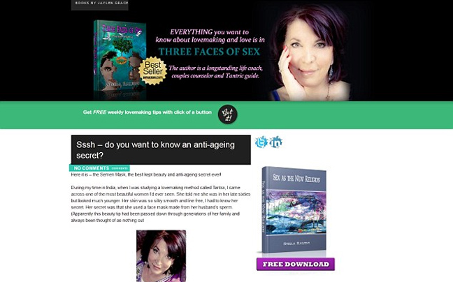 Η βρετανίδα, η οποία παρουσιάζει τον εαυτό της ως συγγραφέα, σύμβουλο ζευγαριών και δάσκαλο της Τάντρα, εξηγεί ότι έμαθε το συγκεκριμένο μυστικό αντιγήρανσης στην Ινδία. Εκεί, λέει ότι συνάντησε τις πιο όμορφες γυναίκες που έχει δει στη ζωή της. «Ήταν κοντά στα εβδομήντα αλλά έδειχναν πολύ νεότερες» δηλώνει χαρακτηριστικά.