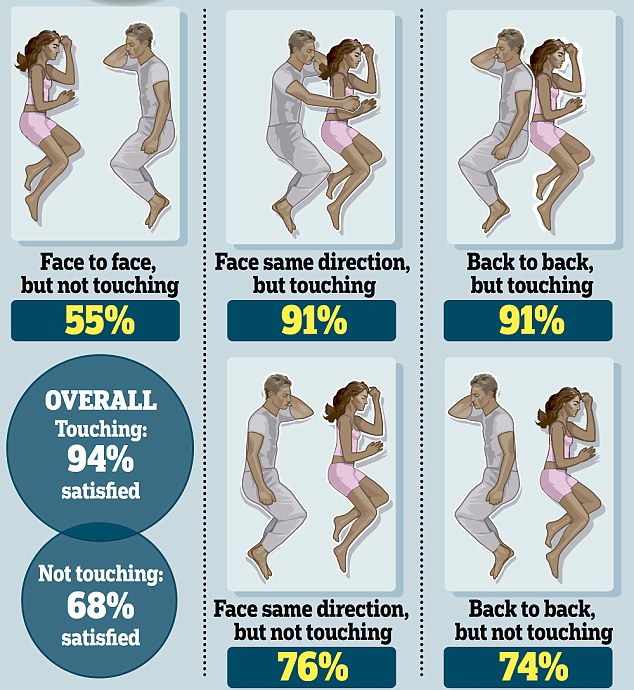 Επίσης, τα ζευγάρια που φροντίζουν ώστε να έχουν κάποια σωματική επαφή (π.χ. άγγιγμα) κατά τη διάρκεια του ύπνου τους, είναι πιο χαρούμενα από εκείνα που δεν αγγίζονται παρά μόνο όταν σηκωθούν από το κρεβάτι το πρωί!