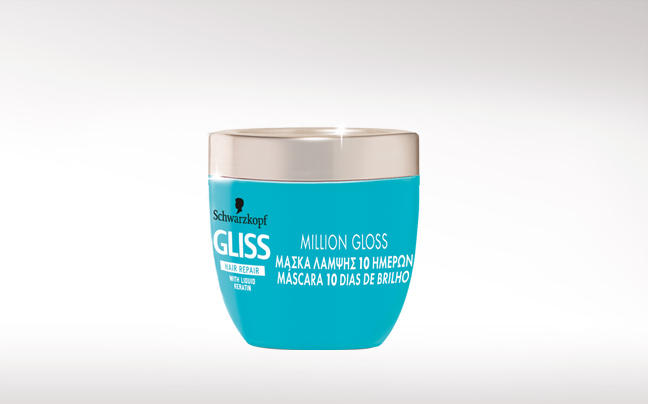 Η νέα σειρά περιποίησης Gliss Million Gloss, με συμπυκνωμένο ελιξίριο λάμψης, αποτελείται από σαμπουάν και conditioner, ενώ η μάσκα Gliss Million Gloss 10-Day Shine Treatment ολοκληρώνει τη σειρά, προσφέροντας από την πρώτη κιόλας εφαρμογή εντατική αναδόμηση και λάμψη που διαρκεί έως και 10 ημέρες.