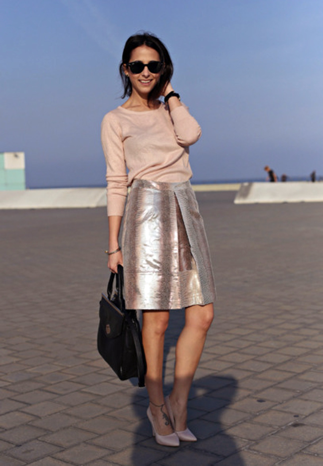 Τα μεταλλικά στοιχεία μπορείτε να τα επιλέξετε για μια ιδιαίτερη εμφάνιση. Θέλουν όμως προσοχή. Επειδή γυαλίζουν, είναι προτιμότερο να τα φορέσετε σε κάποια βραδινή σας έξοδο. Το πρωί προτιμήστε πέδιλα, παπούτσια ή τσάντες με αυτό το ιδιαίτερο trend (Πηγή: pinterest.com).