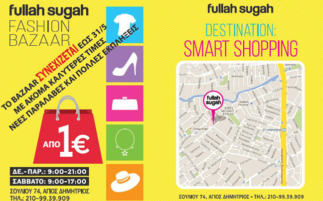 Το επιτυχημένο bazaar της Fullah Sugah ολοκληρώθηκε μετά από 15 μέρες με μεγάλη επιτυχία, αλλά μετά από απαίτηση πολλών πελατών παίρνει παράταση μέχρι και το Σάββατο 31/5.
