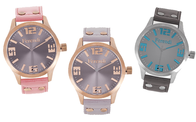Tα ρολόγια της εταιρείας Ferendi με ιταλικό design, μοντέρνα αισθητική, τεράστια ποικιλία και εξαιρετικές τιμές αλλάζουν τη συνήθεια του «χρόνου» για όλους μας. Η εταιρεία Ferendi δημιουργεί fashion ρολόγια από το 2006 και αναδεικνύεται ως το πιο δυναμικό και ανερχόμενο brand στην αγορά των fashion ρολογιών.