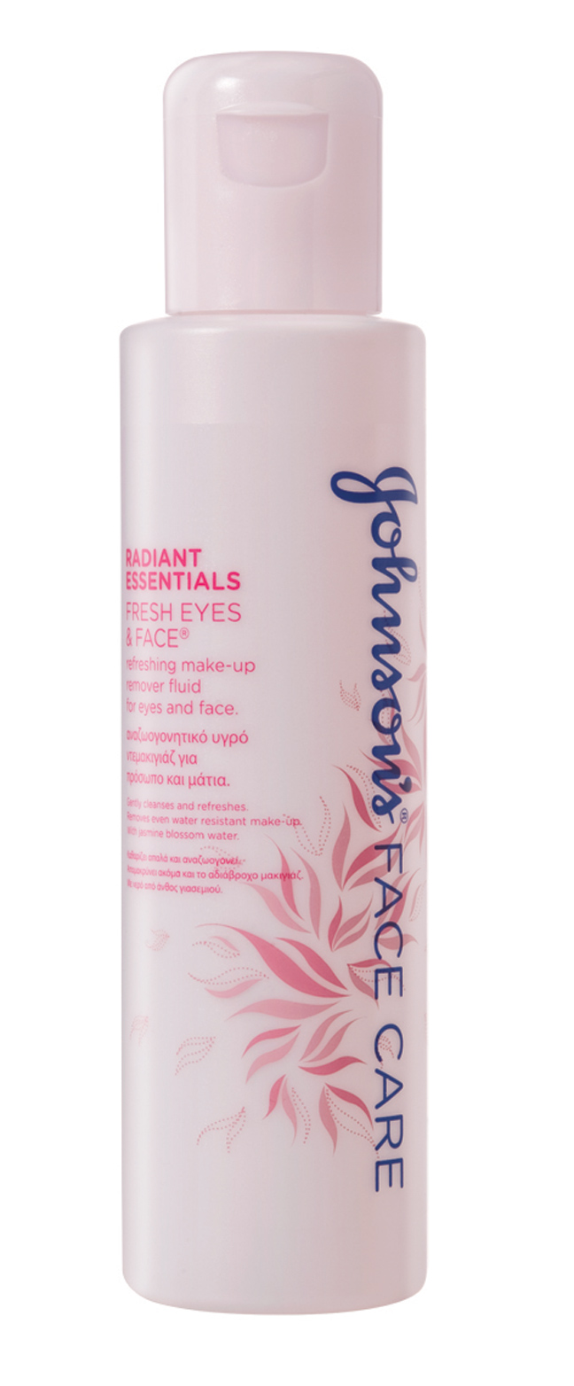 Johnson’s Radiant Essentials Aναζωογονητικό Yγρό Ντεμακιγιάζ 125ml. Το αναζωογονητικό υγρό ντεμακιγιάζ JOHNSON’S Radiant Essentials, χάρη στο ανθόνερο γιασεμιού καθαρίζει απαλά χωρίς να αφήνει ίχνος λιπαρότητας, ενυδατώνει και αναζωογονεί την επιδερμίδα ενώ αφαιρεί και την πιο επίμονη μάσκαρα αφήνοντας την επιδερμίδα εξαιρετικά απαλή και γεμάτη φρεσκάδα. Π.Λ.Τ.: 5,30 ευρώ
