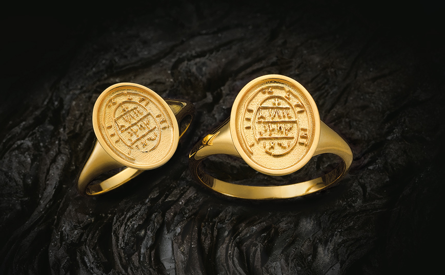 Το χαρακτικό θέμα του κάθε δαχτυλιδιού έχει χρήση σφραγίδας, είτε αυτό είναι από χρυσό 18kt ή ασήμι 925, είτε από πραγματικό σφραγιδόλιθο με την παράσταση σμιλευμένη πάνω σε ημιπολύτιμο λίθο. Οι συμβολισμοί και οι τεχνικές της κάθε Σφραγίδας έχουν τους δικούς τους ξεχωριστούς κώδικες, βγαλμένους τόσο από την εποποιία της Επανάστασης όσο κι από την μακραίωνη ελληνική εικονογραφία.