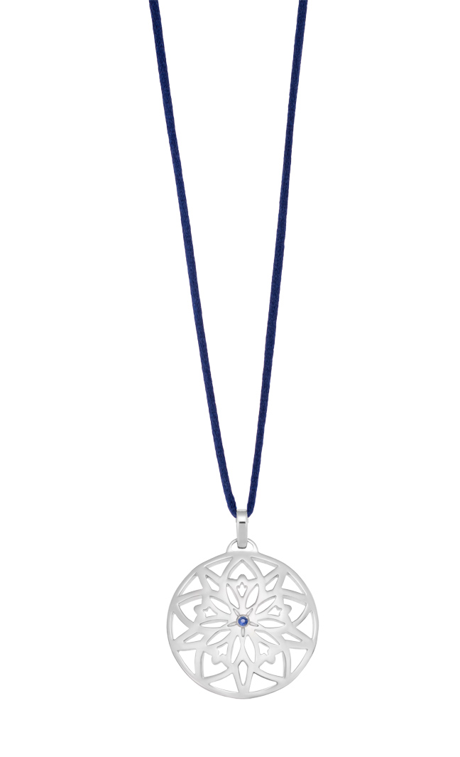 Παντατίφ γούρι 2015 “Centaurea” σε ασήμι γυαλιστερό με μπλε ζαφείρι και σατέν κορδόνι.