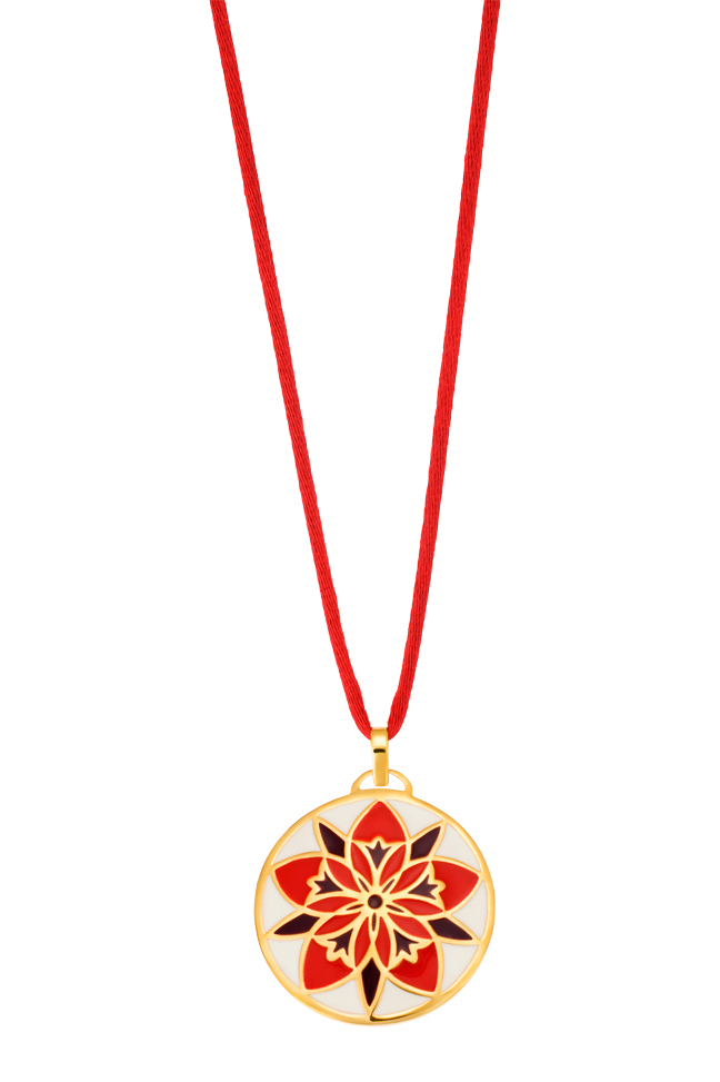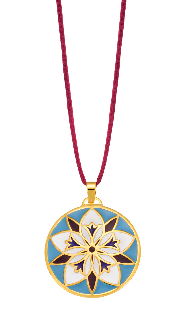 Παντατίφ γούρι 2015 “Centaurea” σε ασήμι επιχρυσωμένο γυαλιστερό με σμάλτο στα χρώματα της Κενταύριας και σατέν κορδόνι.