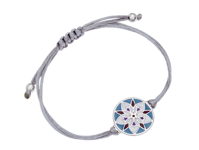 Βραχιόλι γούρι 2015 “Centaurea” σε ασήμι γυαλιστερό με σμάλτο στα χρώματα της Κενταύριας λαι σατέν κορδόνι.