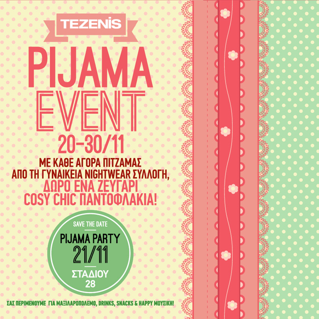 Παράλληλα, pijama party διοργανώνεται την Παρασκευή 21/11, στο κατάστημα Tezenis (Σταδίου 28, Αθήνα).