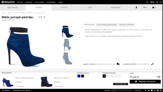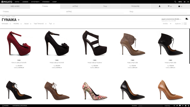 Στο migato.gr οι καταναλωτές μπορούν να αποκτήσουν τα νέα σχέδια της σεζόν, καθώς και μοναδικές προσφορές, από τη γυναικεία, ανδρική, παιδική συλλογή υποδημάτων και αξεσουάρ του brand, μόνο με μερικά κλικς, από όπου κι αν βρίσκονται!