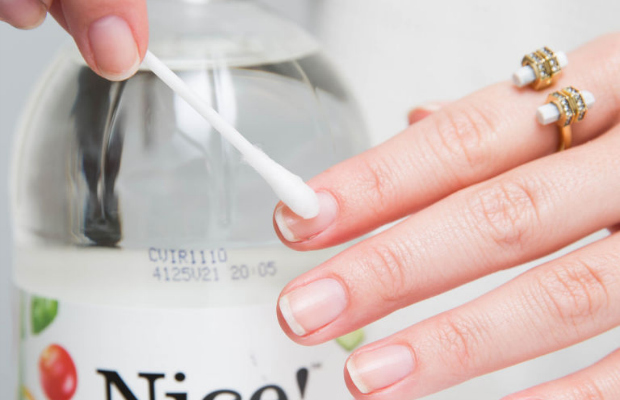 Χρησιμοποιήστε μια μπατονέτα με λευκό ξύδι και σκουπίστε τα νύχια σας. Αυτό αφαιρεί οποιαδήποτε συγκέντρωση κάποιου προϊόντος περιποίησης ή φυσικά έλαια που θα μπορούσε να δημιουργήσει ένα φράγμα σε συνδυασμό με το μανό. Μόλις τα νύχια σας στεγνώσουν, εφαρμόστε μια στρώση βάσης.
