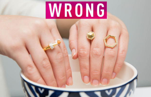 Συνήθως οι μανικιουρίστες το κάνουν για να μαλακώσουν τα πετσάκια, αλλά το πρόβλημα είναι ότι τα νύχια συγκρατούν το νερό και μετά δεν αναδεικνύεται το χρώμα. Είναι προτιμότερο να χρησιμοποιείτε λαδάκι.