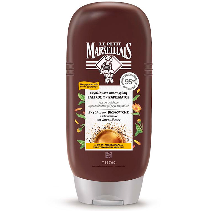 Η σειρά του Le Petit Marseillais «Έλεγχος Φριζαρίσματος», μπορεί να επαναφέρει τη χαμένη λάμψη και την απαλότητα στα μαλλιά σου. Η αυθεντική συνταγή περιέχει εκχύλισμα από βιολογική Καλέντουλα και βιολογικό Σησαμέλαιο, γνωστό για τις θρεπτικές και μαλακτικές του ιδιότητες. Ενυδατώνει και θρέφει τα μαλλιά από τη ρίζα έως τις άκρες και τα προστατεύει από το φριζάρισμα για 48 ώρες.