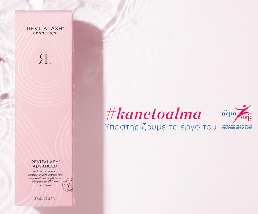 Αυτόν τον Οκτώβριο θα προσφέρει μέρος των εσόδων από την πώληση των ορών RevitaLash® Advanced EyeLash Conditioner & RevitaBrow® Advanced EyeBrow Conditioner στον Πανέλληνιο Σύλλογο Γυναικών με Καρκίνο Μαστού «Άλμα Ζωής», με στόχο την ενίσχυση των σκοπών και του έργου του Συλλόγου.