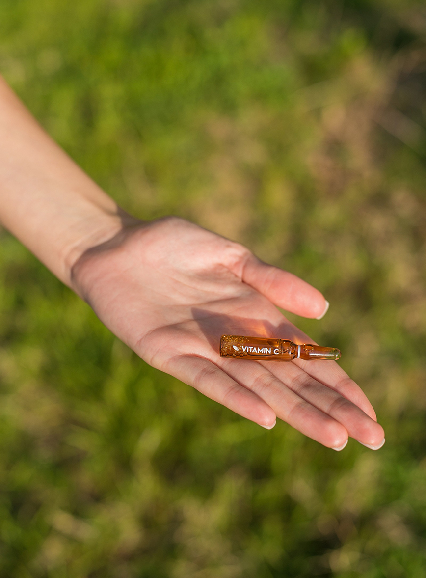 - Ολοκλήρωσε τη βραδινή σου περιποίηση, εφαρμόζοντας καθημερινά 1 αμπούλα λάμψης & αντιγήρανσης Vitamin C σε καθαρό πρόσωπο και λαιμό.