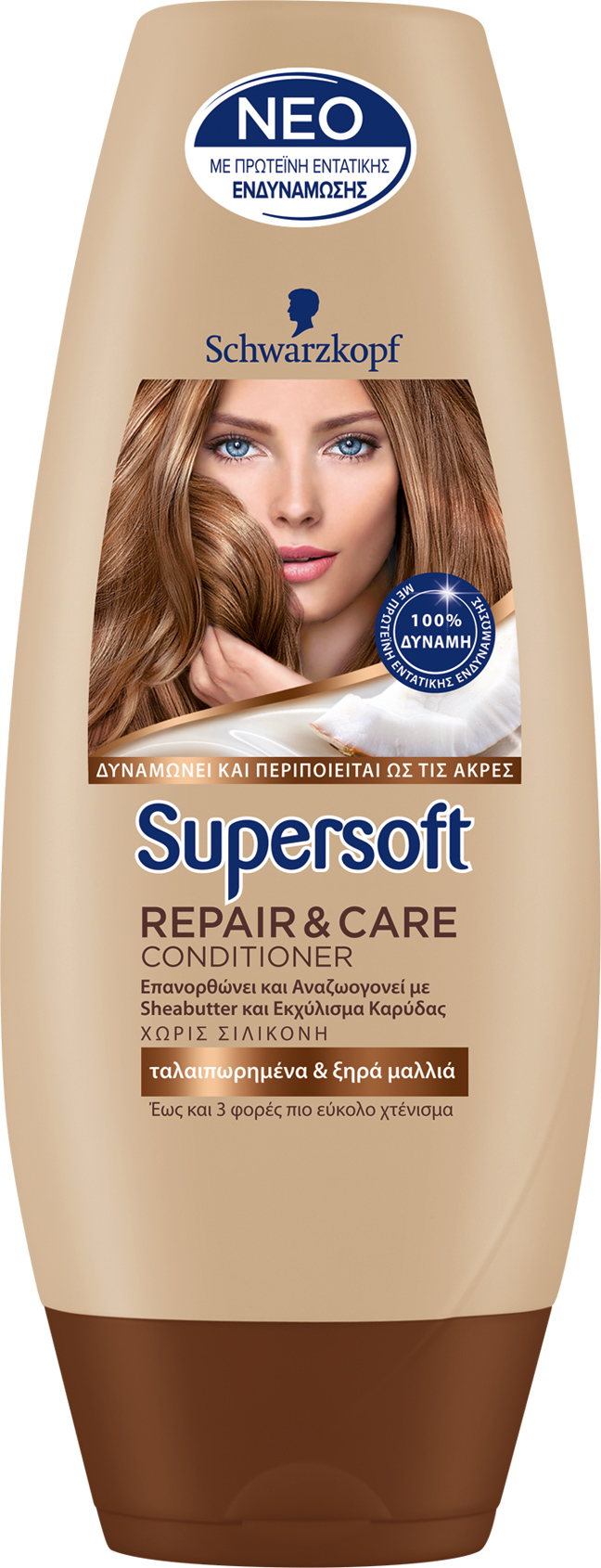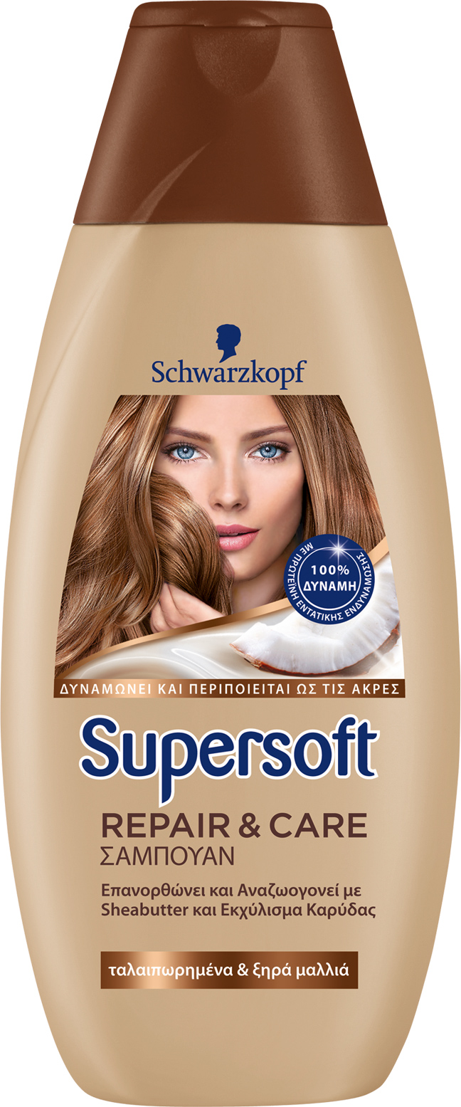 – Το Supersoft Repair & Care, με Shea Butter και Εκχύλισμα Καρύδας, επανορθώνει και ξαναδίνει ζωή στα ξηρά και ταλαιπωρημένα μαλλιά.