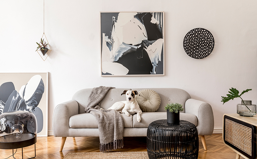 Φωτογραφίες, θεματικές εκτυπώσεις και τολμηρά έργα τέχνης μπορούν να αναδείξουν την προσωπικότητα και να φτιάξουν τη διάθεσή σας. Εάν ο χώρος σας είναι περισσότερο ουδέτερος, χρησιμοποιήστε τον τοίχο πάνω από τον καναπέ ως έναν τρόπο για να προσθέσετε μια ποικιλία χρωμάτων στο περιβάλλον.
