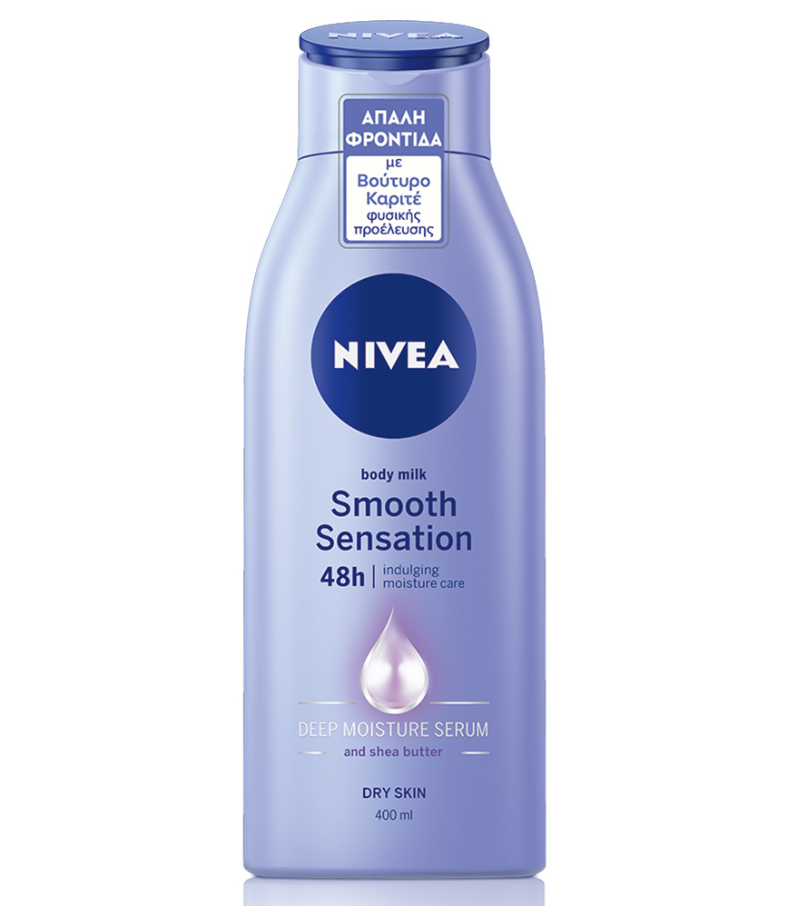 Το γαλάκτωμα σώματος NIVEA Smooth Sensation είναι εμπλουτισμένο βούτυρο καριτέ 100% φυσικής προέλευσης και ενυδατώνει βαθιά τις ξηρές επιδερμίδες, από την 1η κιόλας εφαρμογή.
