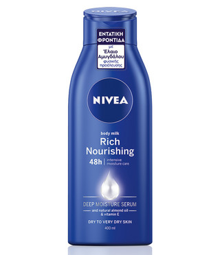 Το γαλάκτωμα σώματος Rich Nourishing είναι εμπλουτισμένο με αμυγδαλέλαιο 100% φυσικής προέλευσης και Βιταμίνη Ε, θρέφοντας σε βάθος τις πολύ ξηρές επιδερμίδες και μειώνοντας αισθητά την ξηρότητά τους.