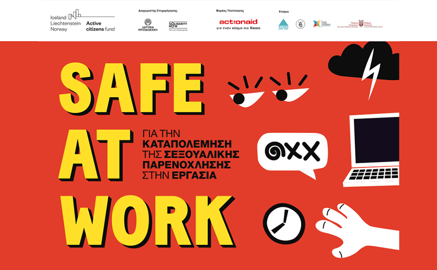 Το έργο Safe at Work υλοποιείται στο πλαίσιο του προγράμματος Active citizens fund, με φορέα υλοποίησης την ActionAid και εταίρους την Επιτροπή Ερευνών του Παντείου Πανεπιστημίου Κοινωνικών και Πολιτικών Επιστημών, τις Women On Top, τον Σύνδεσμο Διοίκησης Ανθρωπίνου Δυναμικού Ελλάδας και τη DATAWO.