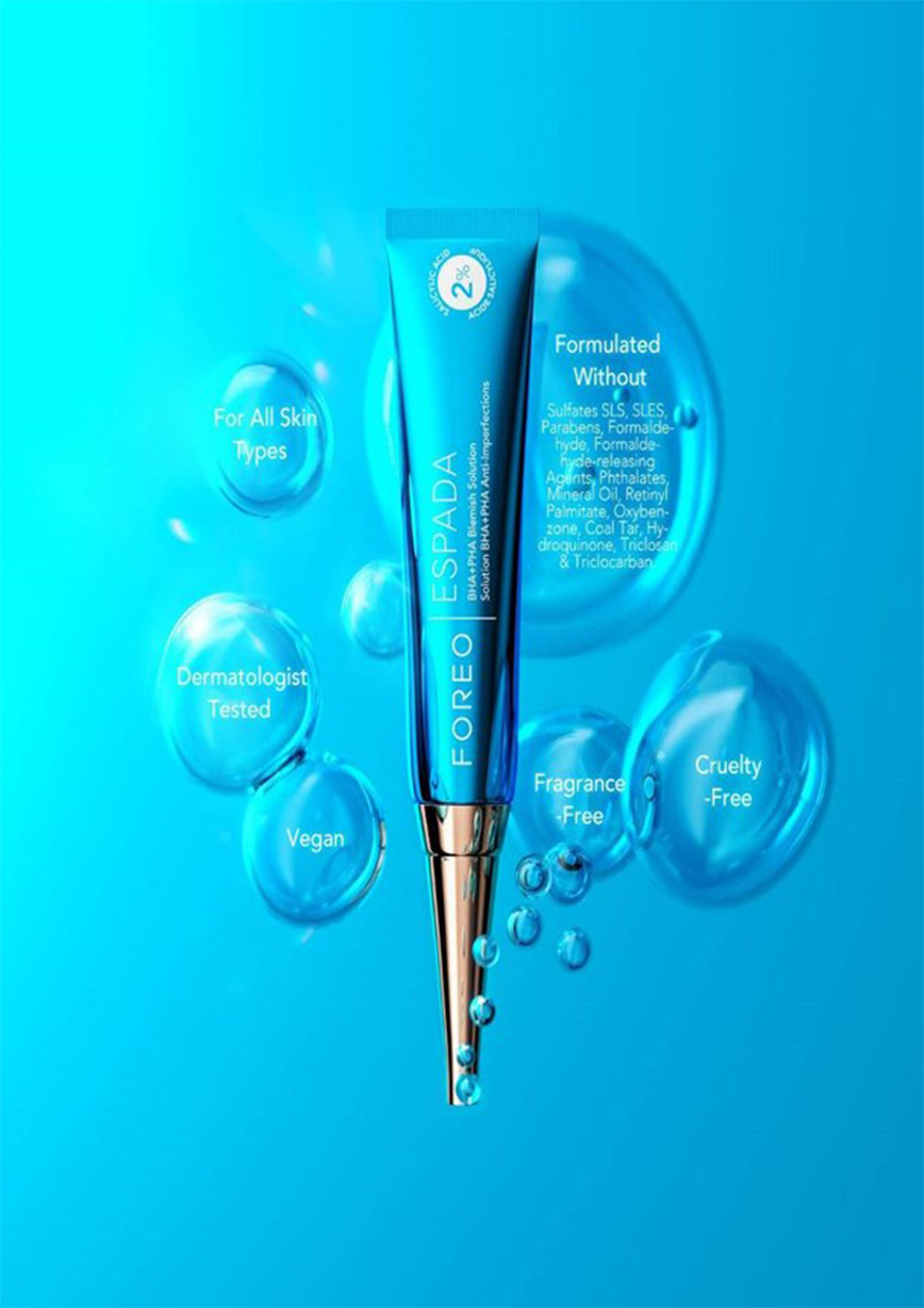 Το ESPADA BHA+PHA Blemish Solution της FOREO είναι μια απλή, γρήγορη και αποτελεσματική λύση για την αντιμετώπιση αυτών των προβλημάτων χαρίζοντας στους λάτρεις της FOREO σε όλο τον κόσμο την καθαρή, φρέσκια και ομοιόμορφη επιδερμίδα που πάντα ονειρεύονταν.