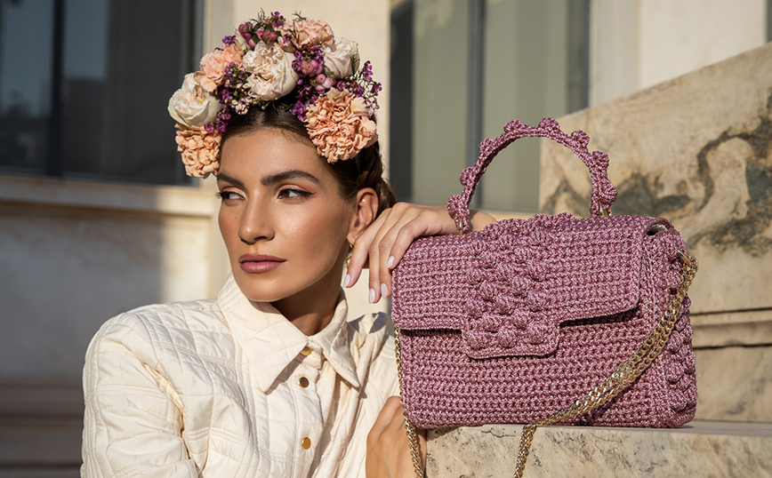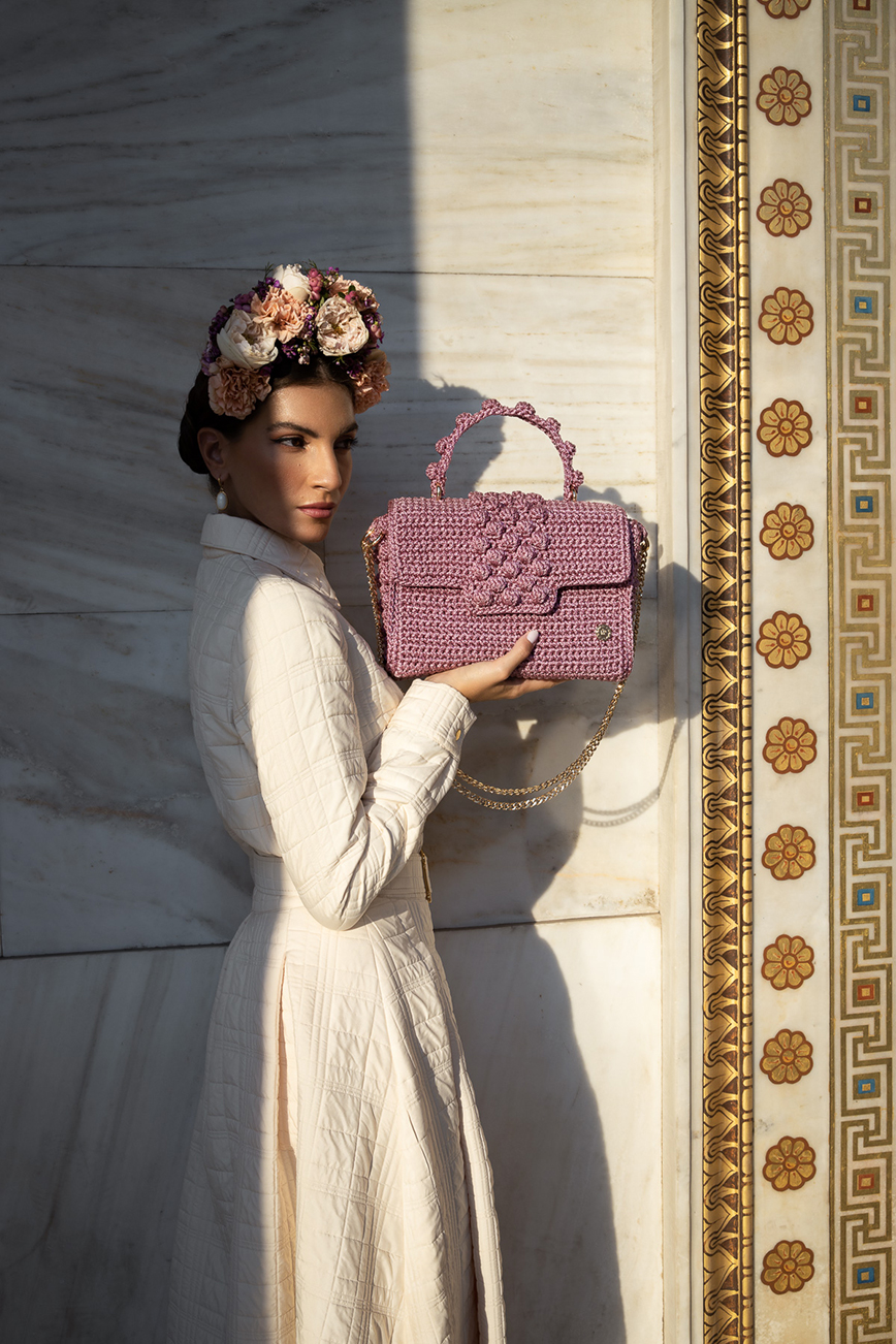 Η συλλεκτική χειροποίητη “Alma” τσάντα διατίθεται σε ένα πανέμορφο dusty pink χρώμα και πλαισιώνεται από χρυσή μεταλλική διπλή αλυσίδα για να φοριέται τόσο στον ώμο, όσο και χιαστί. Το συγκεκριμένο design της τσάντας είναι ένα από τα πιο αντιπροσωπευτικά και παράλληλα best-selling σχέδια του brand, «ντυμένο» πλέον στα ροζ για το συγκεκριμένο καλό σκοπό.