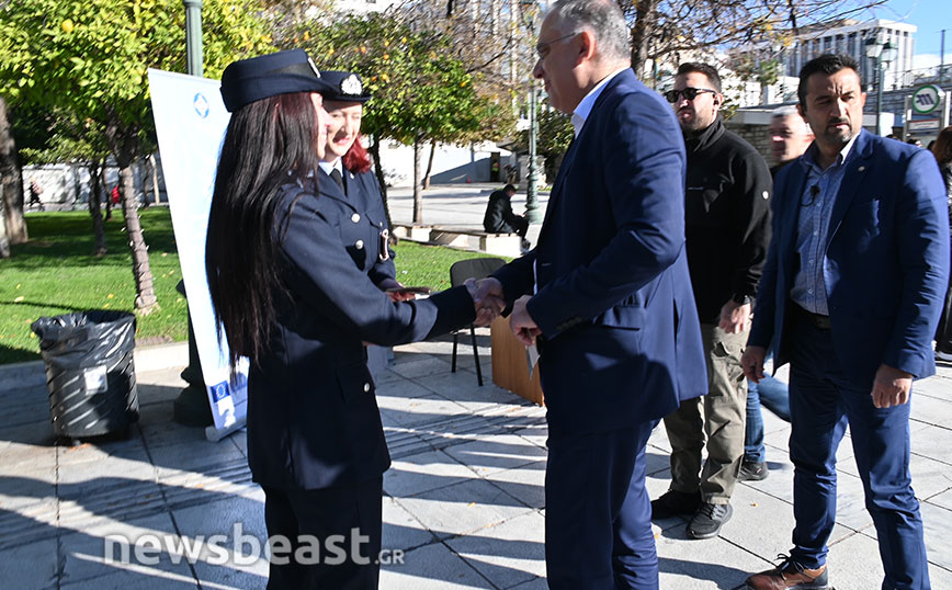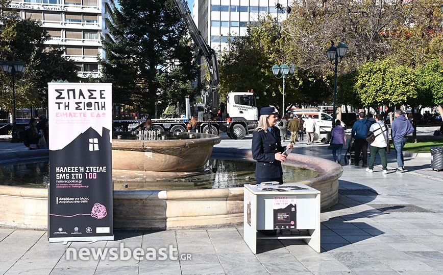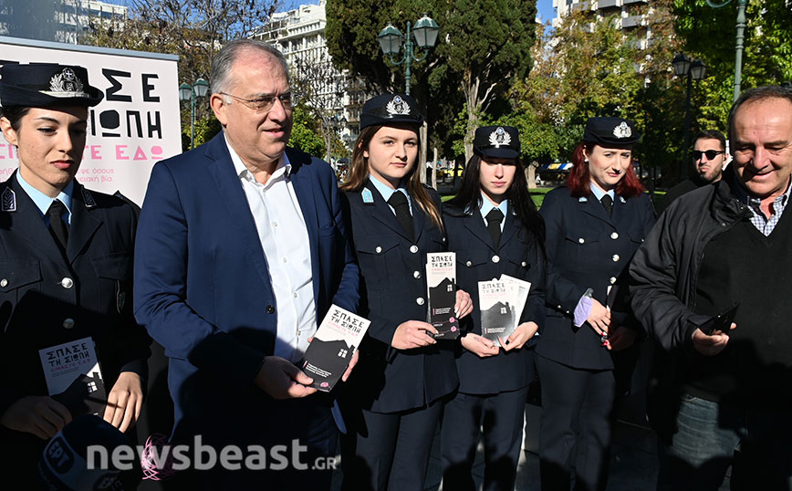 «Σπάσε τη σιωπή, είμαστε εδώ» είναι το μήνυμα που στέλνουν γυναίκες αστυνομικοί στο Σύνταγμα, οι οποίες μοιράζουν ενημερωτικό υλικό στους πολίτες με αφορμή τη Διεθνή Ημέρα εξάλειψης της βίας κατά των γυναικών. Μάλιστα στο σημείο έφτασε και ο υπουργός Προστασίας του Πολίτη, Τάκης Θεοδωρικάκος.