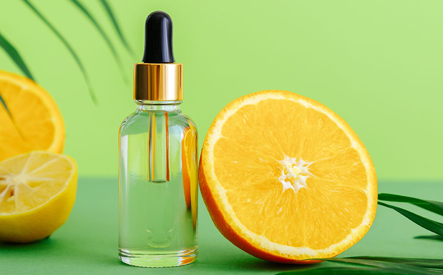 Στην περιποίηση του δέρματος, η βιταμίνη C είναι δημοφιλής για την ικανότητά της να φωτίζει το δέρμα και να προάγει την παραγωγή κολλαγόνου. Ως ένα από τα πιο ισχυρά αντιοξειδωτικά στο δέρμα, η βιταμίνη C έχει αποδειχθεί ότι προστατεύει από τη φωτογήρανση και ότι έχει αντιγηραντική δράση αυξάνοντας τη σύνθεση κολλαγόνου. Συνήθως, η βιταμίνη C εφαρμόζεται τοπικά στο δέρμα με τη μορφή ορών ή ενυδατικών προϊόντων.