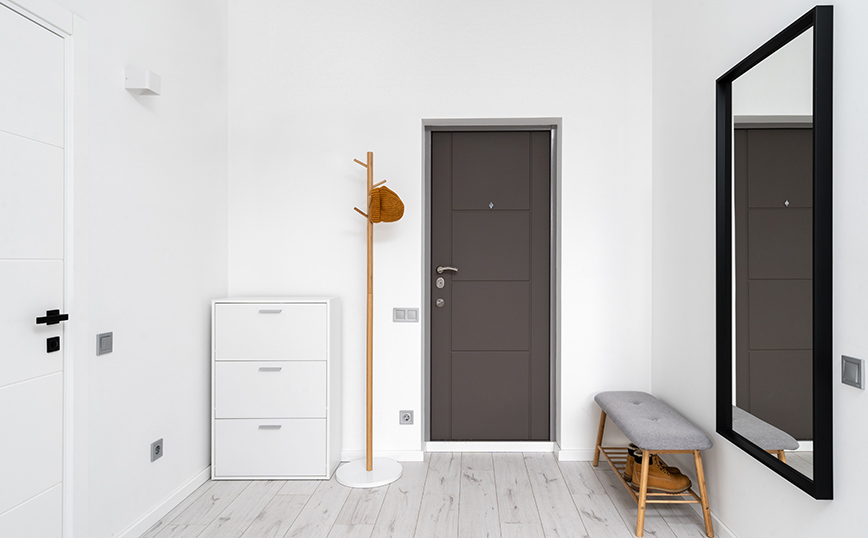 Είναι επιτακτική ανάγκη, λοιπόν, να δημιουργήσετε μια ζεστή και φιλόξενη είσοδο που θα κάνει εξαιρετική πρώτη εντύπωση. Η είσοδος είναι, επίσης, το τέλειο σημείο για επιπλέον αποθηκευτικούς χώρους, όπως ένας μικρός πάγκος ή μια κρεμάστρα ρούχων. Δεν θέλετε να περπατάτε σε όλο το σπίτι με ένα βρεγμένο μπουφάν και να στάζει νερό σε όλο το πάτωμα, οπότε ένας καλόγερος δίπλα στην κεντρική πόρτα είναι ιδανική για να το αφήσετε να στεγνώσει.