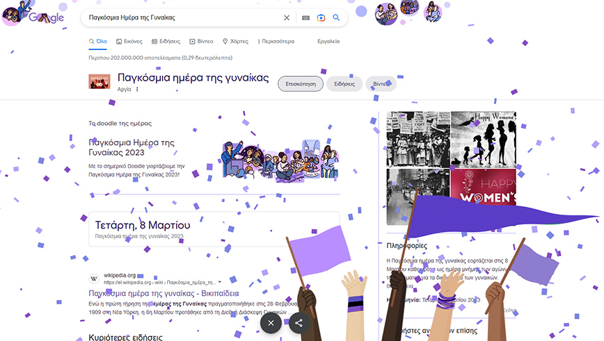 Την Παγκόσμια Ημέρα της Γυναίκας που έχει καθιερωθεί να γιορτάζεται κάθε χρόνο στις 8 Μαρτίου τιμά η Google με το σημερινό της doodle. Το συγκεκριμένο doodle είναι αφιερωμένο σε όλες τις γυναίκες, που στηρίζουν η μία την άλλη σε όλες τις πτυχές της ζωής.