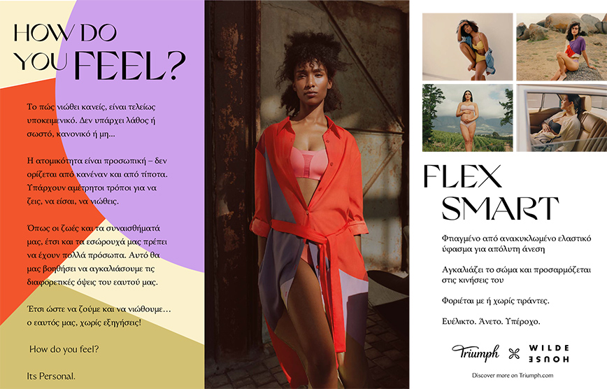 και πάλι ΑΝΕΣΗ! Γιατί η άνεση είναι το κλειδί όχι μόνο για να νιώθουμε καλά με το σώμα μας, αλλά και με τον εαυτό μας! Και εδώ ερχόμαστε στην «καρδιά» της φιλοσοφίας του brand, που δεν έχει να κάνει με τη γυναίκα γενικώς, αλλά με τη γυναίκα ειδικώς, δηλαδή εσένα, τις ανάγκες σου, τον τρόπο ζωής σου. Γι’ αυτό και τα νέα εσώρουχα Triumph εξυμνούν την ατομικότητα, τη μοναδικότητα κάθε γυναίκας και μιλάνε τη γλώσσα της ευελιξίας, της επιλογής και της ελευθερίας!